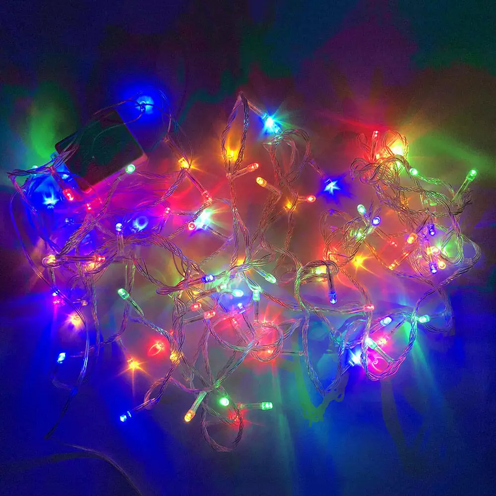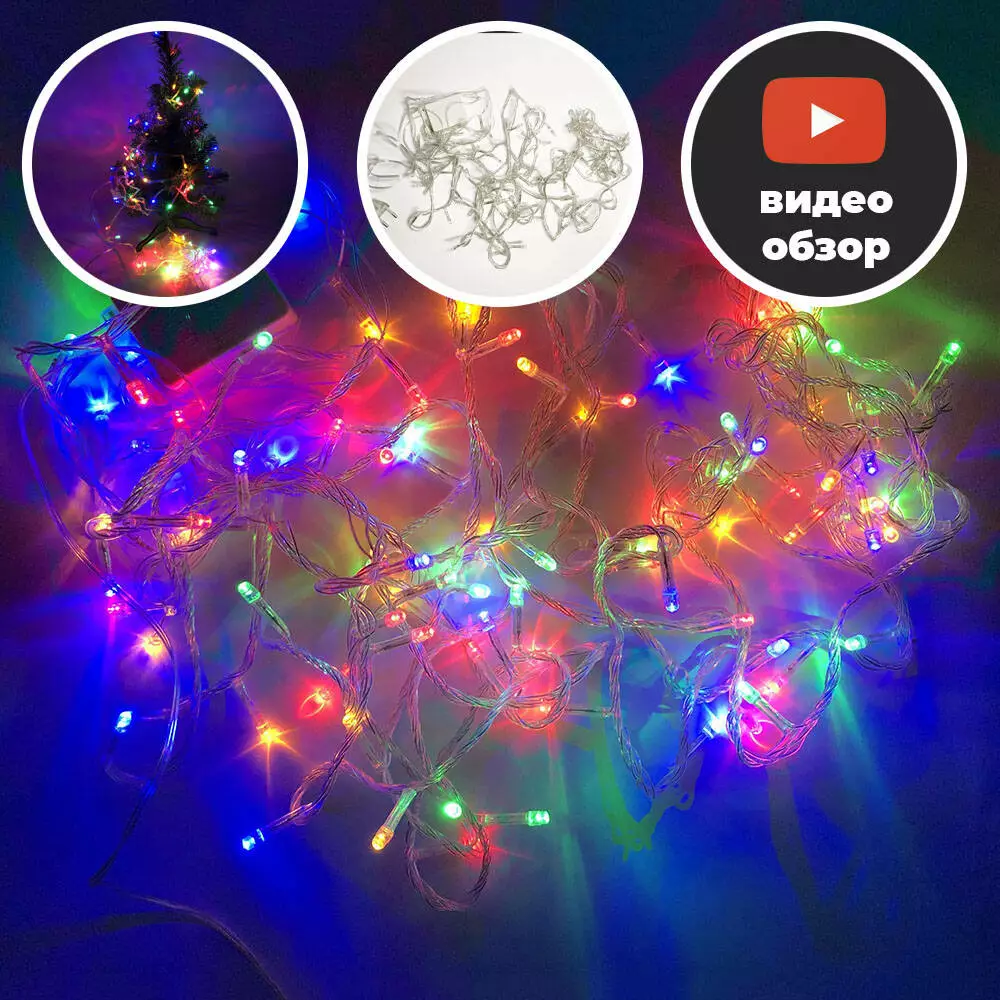 Гирлянда светодиодная разноцветная диоды разноцветные, провод прозрачный, 7м