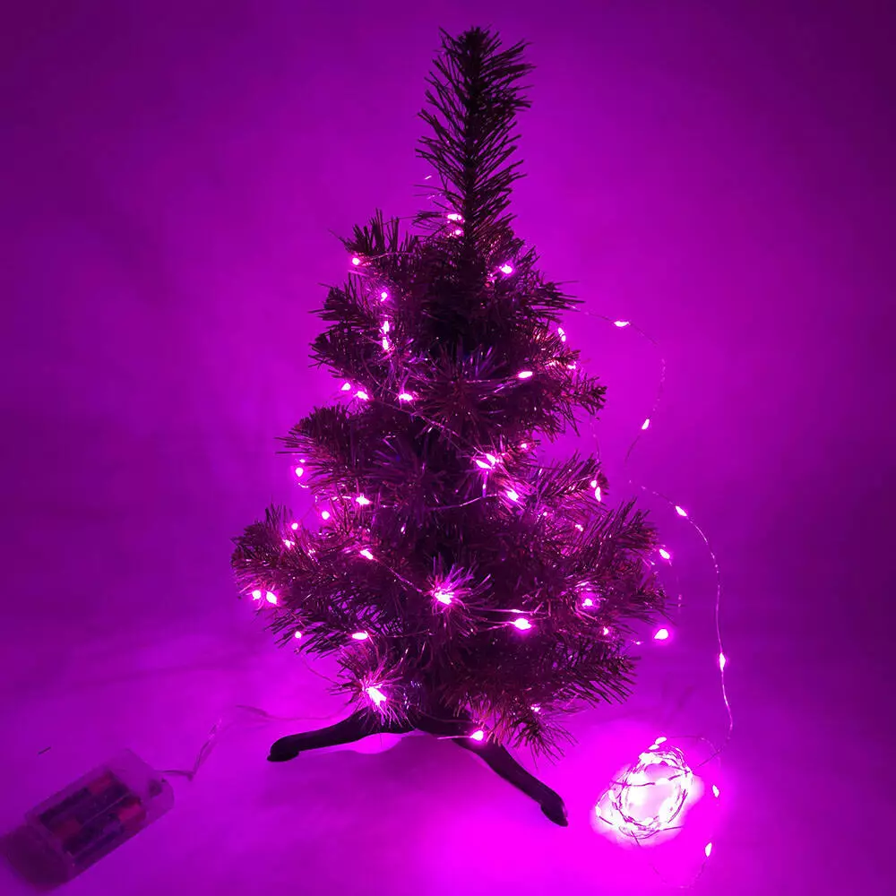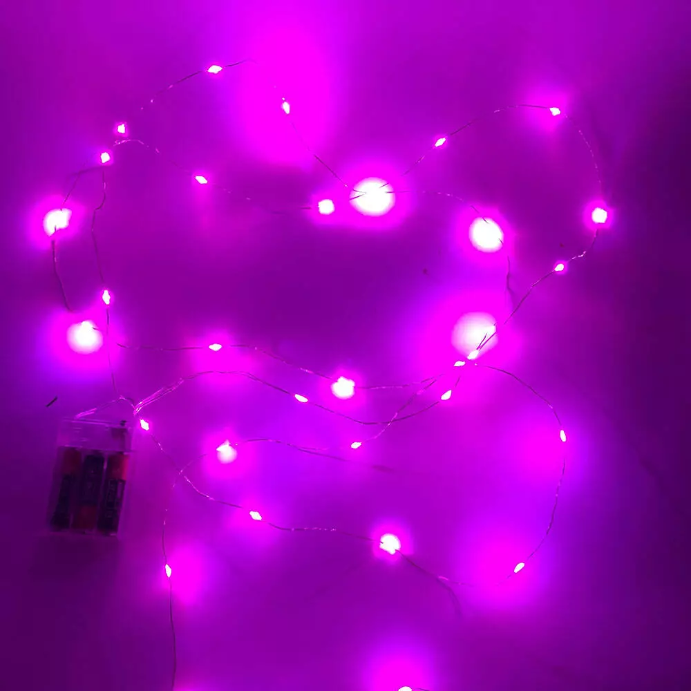 Гирлянда светодиодная роса на батарейках розовая, провод прозрачный, 5м