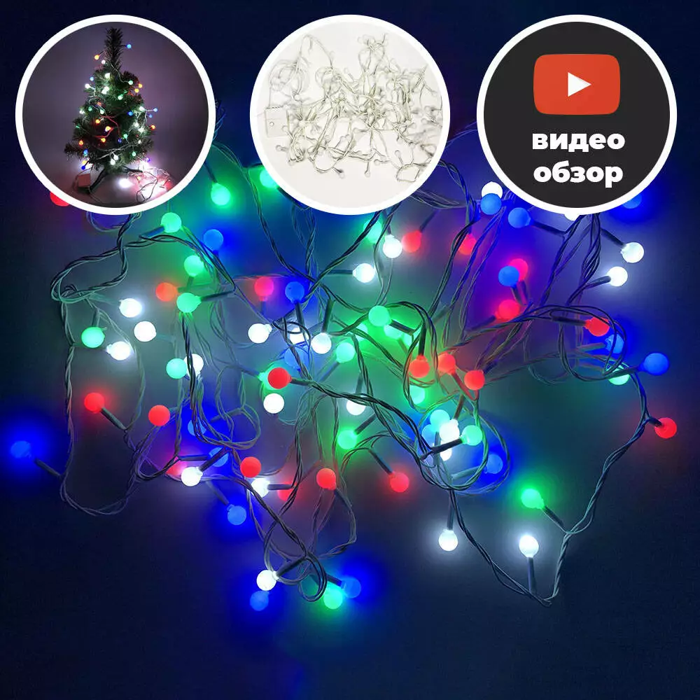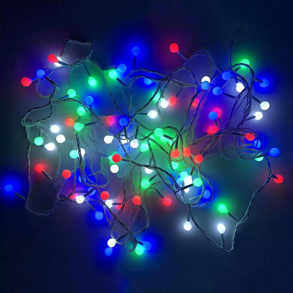 Гирлянда светодиодная шарики разноцветные, провод белый, 7м