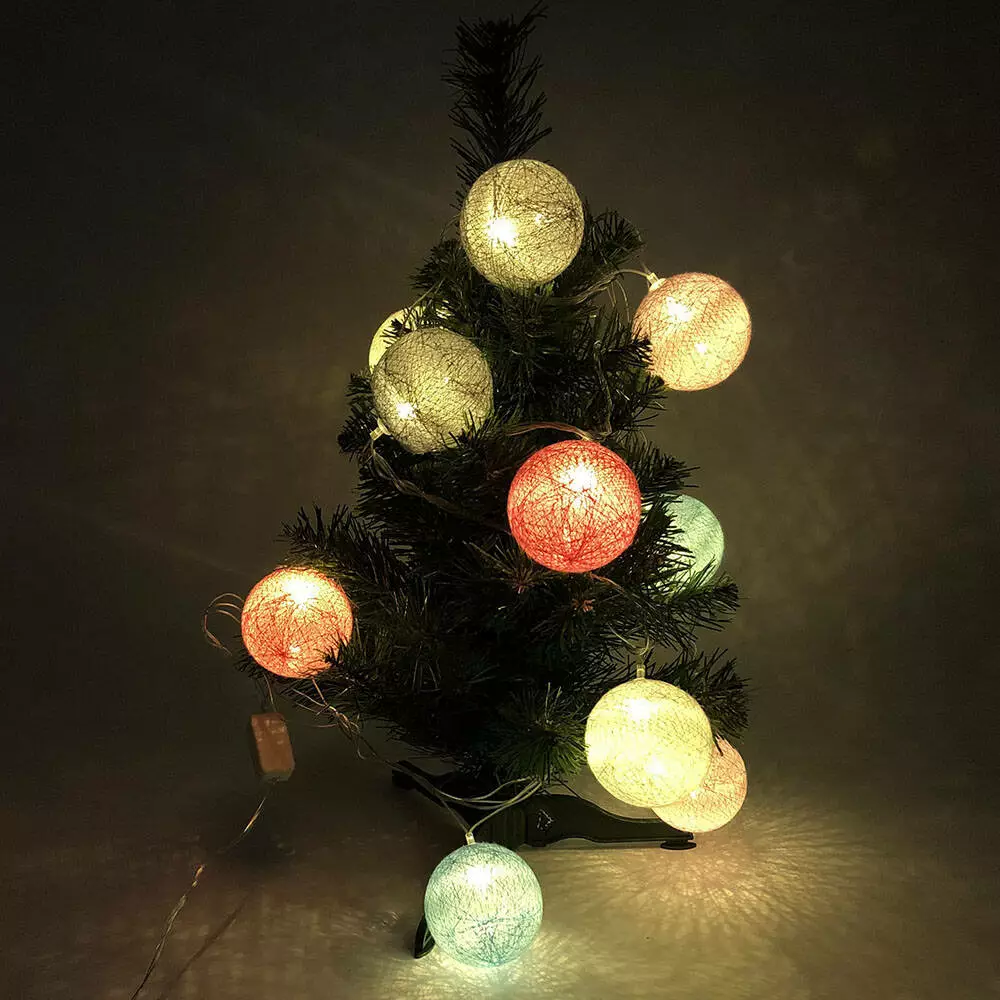 Гирлянда светодиодная, шары из нитей, теплый белый, провод прозрачный, 2м