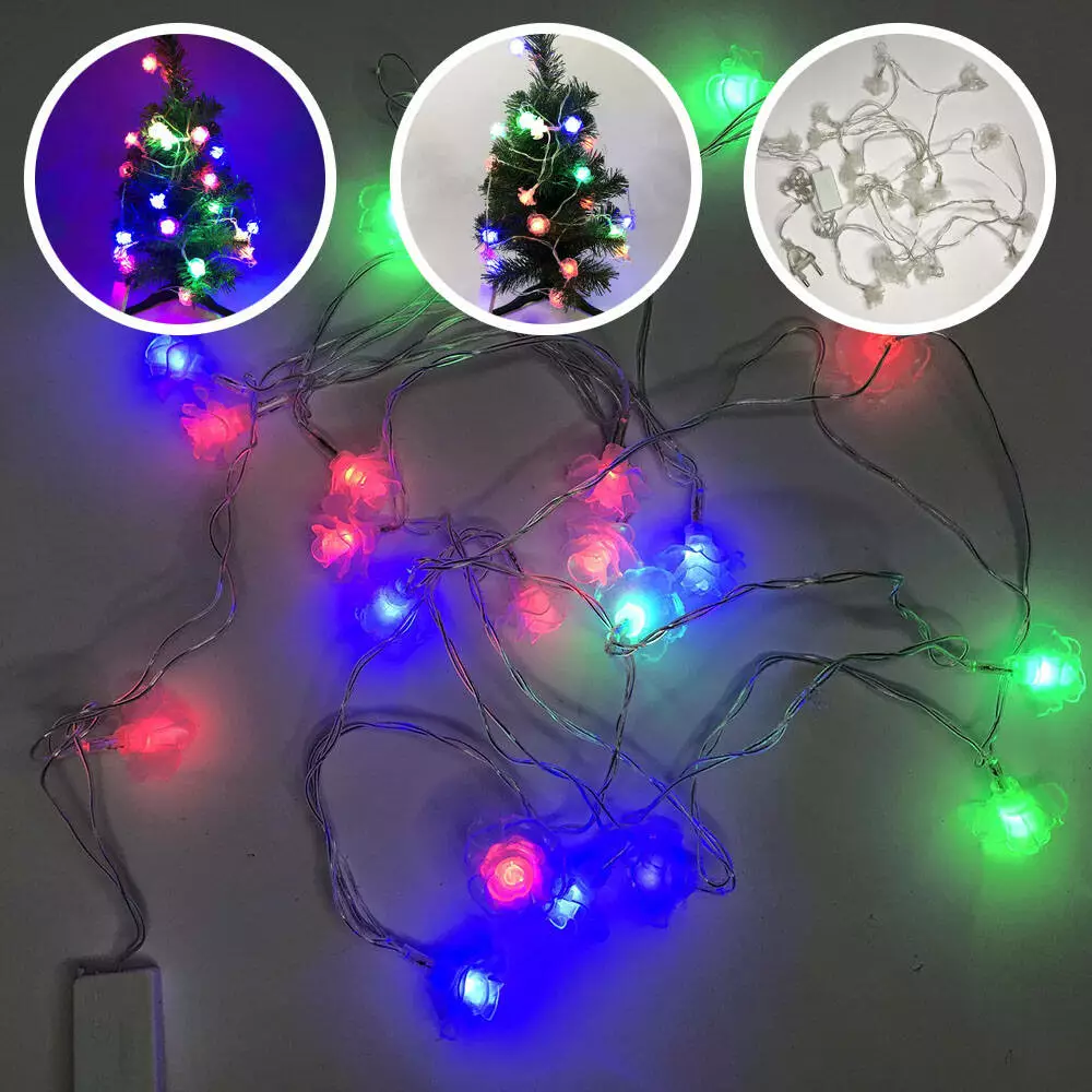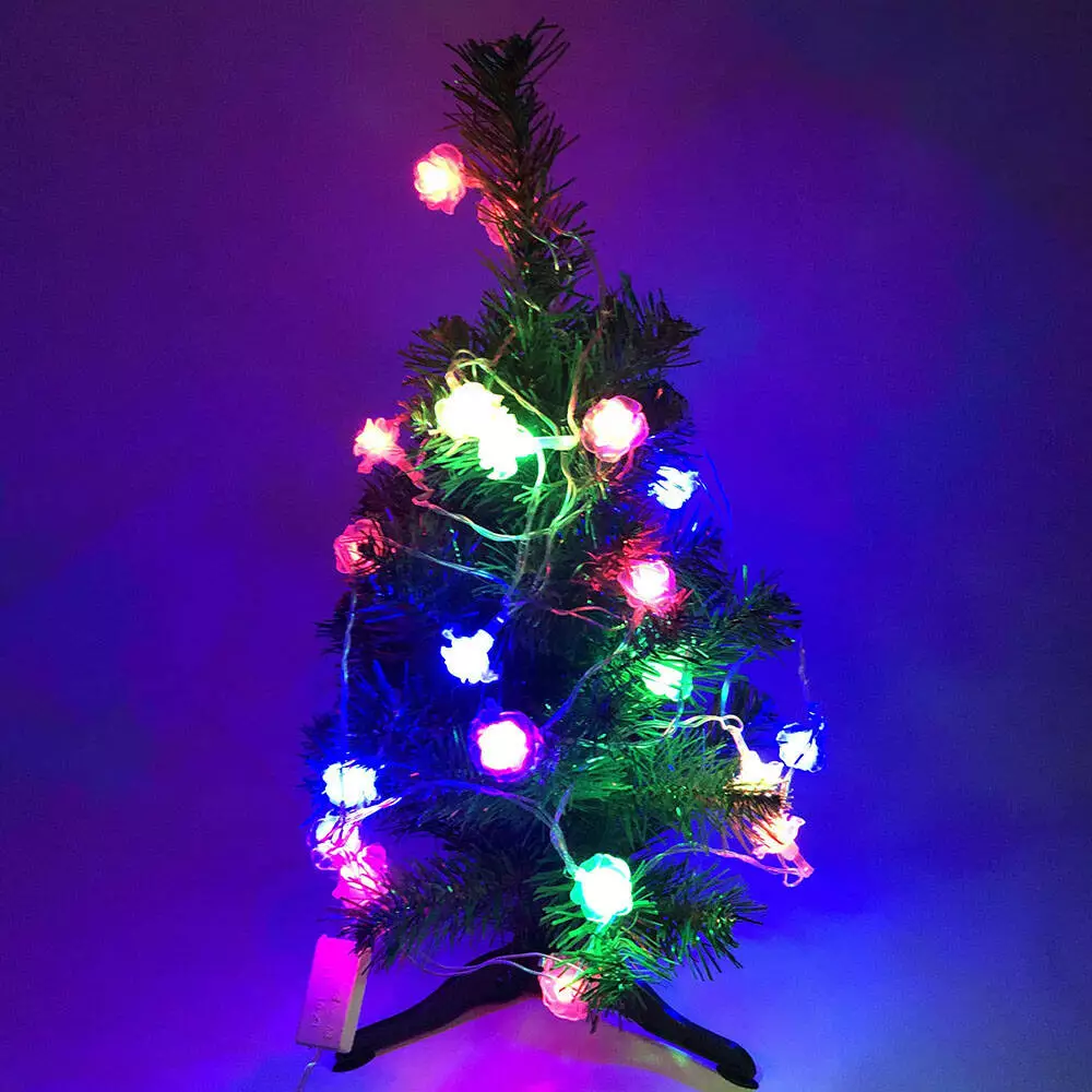 Гирлянда светодиодная цветочки разноцветные, провод прозрачный, 3м