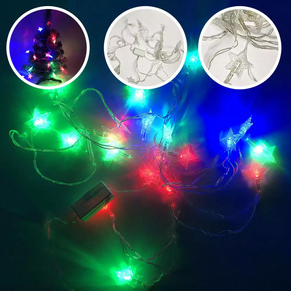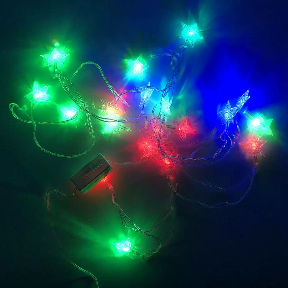 Гирлянда светодиодная звездочки разноцветные, провод прозрачный, 3м