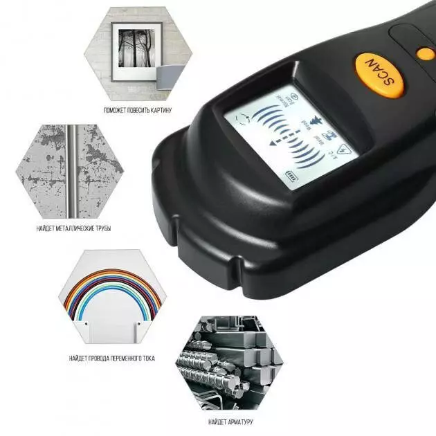 Профессиональный металлоискатель с селективным сенсором, что отличает провода под током и обычные гвозди или арматуру в стенах. Имеет два режима сканирования и удобный локатор, с помощью которого можно легко находить металлические предметы там, где вы этого и не ожидали. Это позволяет предотвратить несчастные случаи во время ремонтных работ, облегчить и выиграть время при выборе места для сверления отверстий в стенах, поиска обрыва электросети под штукатуркой т.д.