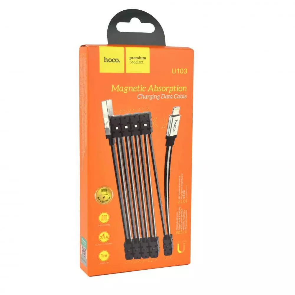 Кабель Hoco U103 Magnetic Absorption, Lightning, 1m, 2.4A, Black