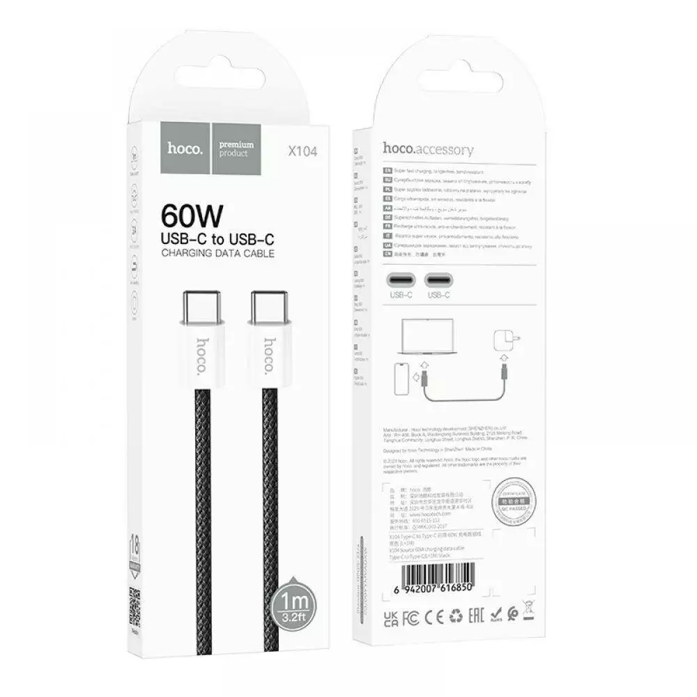 Кабель Hoco X104 Source, Type-C to Type-C, 1m, 60W, Black