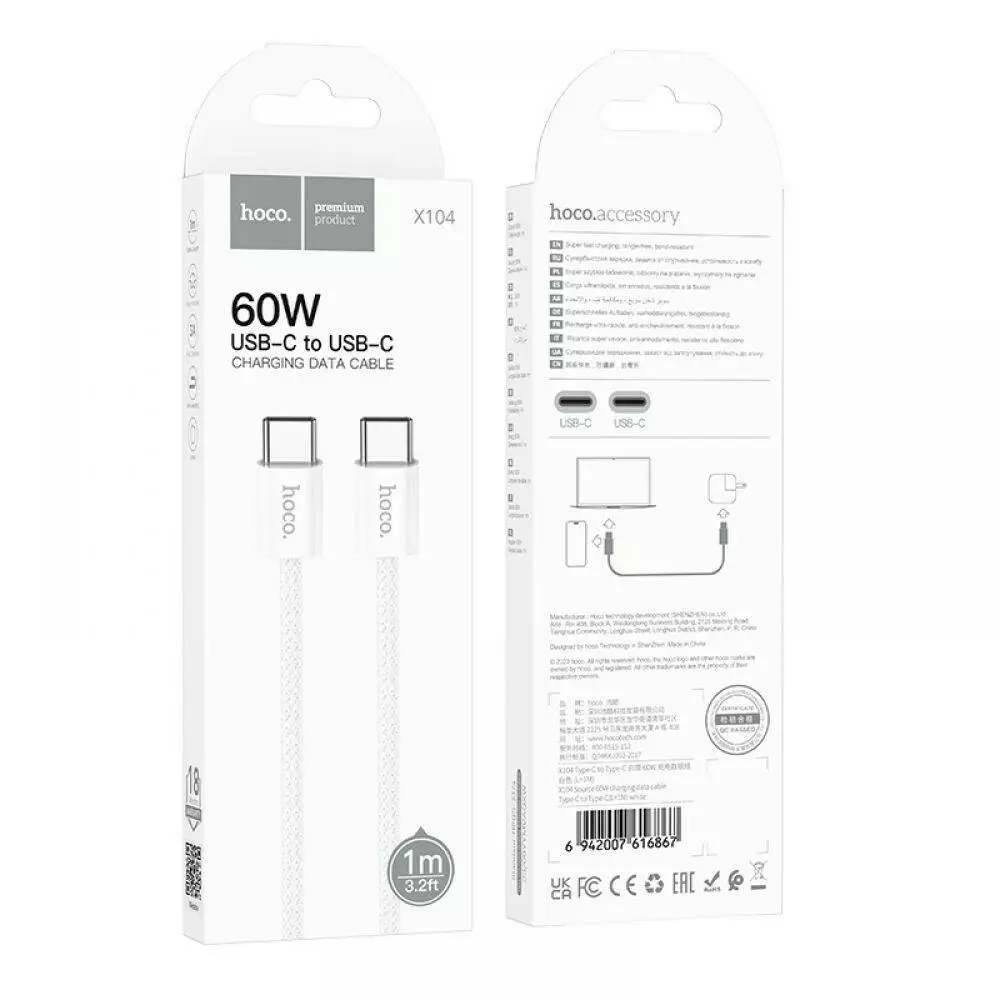 Кабель Hoco X104 Source, Type-C to Type-C, 1m, 60W, Green