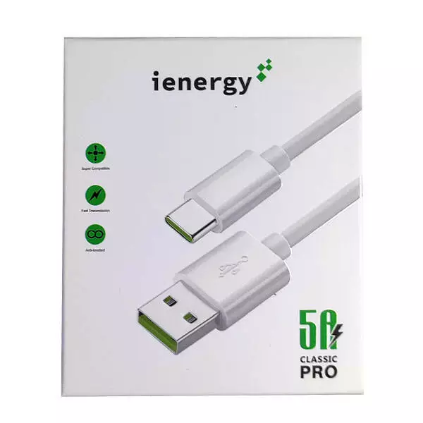 Кабель iEnergy Classic Pro, Type-C, 1m, 5A, White