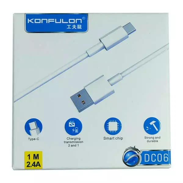 Кабель Konfulon DC06, Type-C, 1m, 2.4A, White