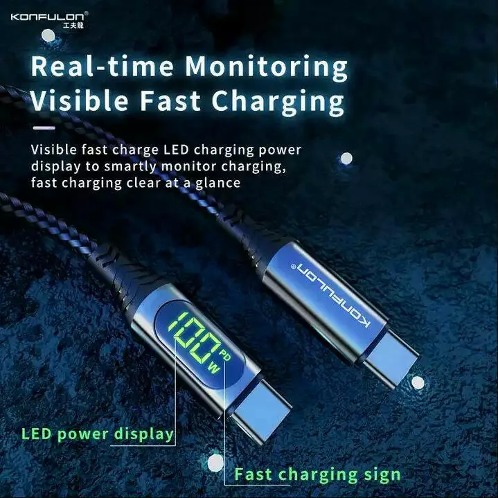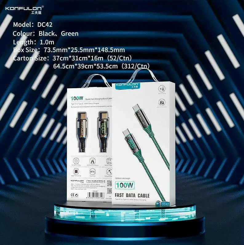 Кабель Konfulon DC42, Type-C to Type-C, 1m, 100W, Black