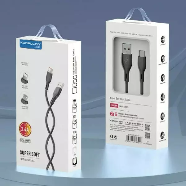 Кабель Konfulon DC54, Lightning, 1m, 2.4A, Black