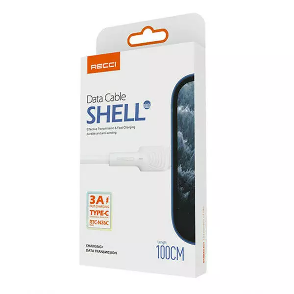 Кабель Recci Shell RTC-N26C, Type-C, 1m, 3A, White