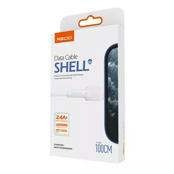 Кабель Recci Shell RTC-N26L, Lightning, 1m, 2.4A, White