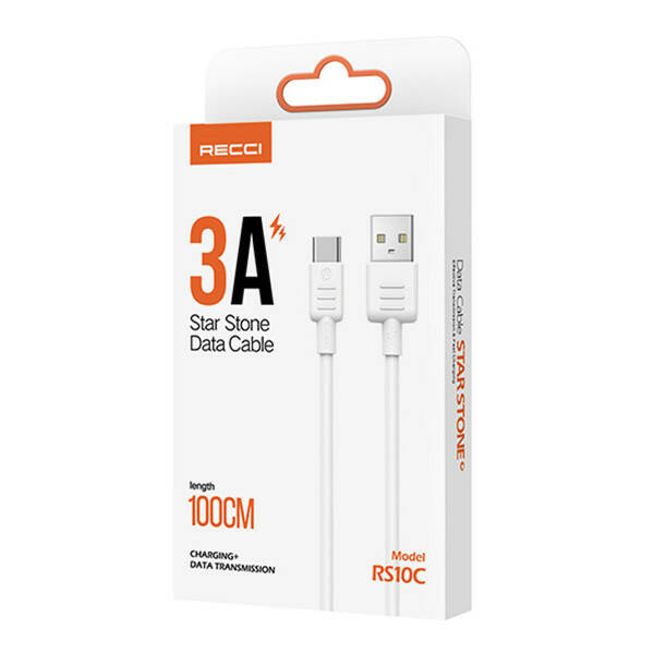 Кабель Recci Star Stone RS10C, Type-C, 1m, 3A, White