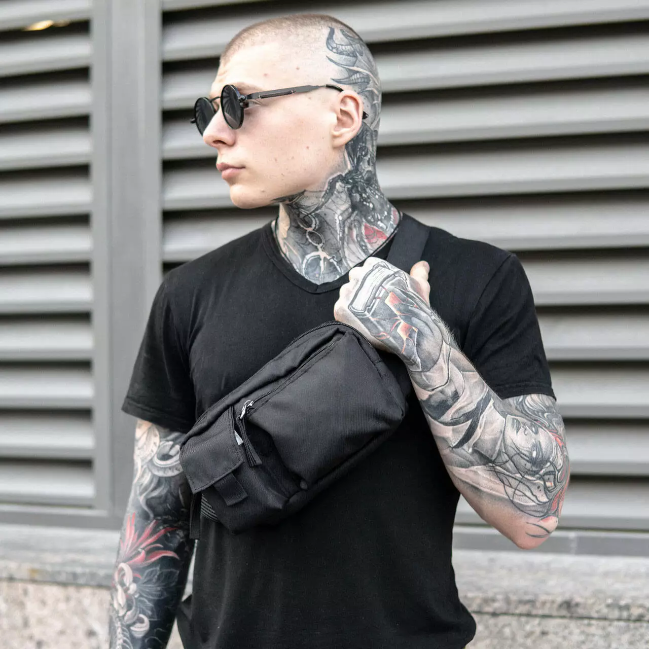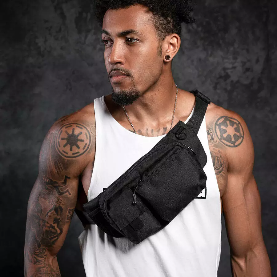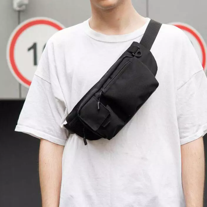 Качественная и надежная тактическая сумка-бананка из прочной и водонепроницаемой ткани черная через плечо