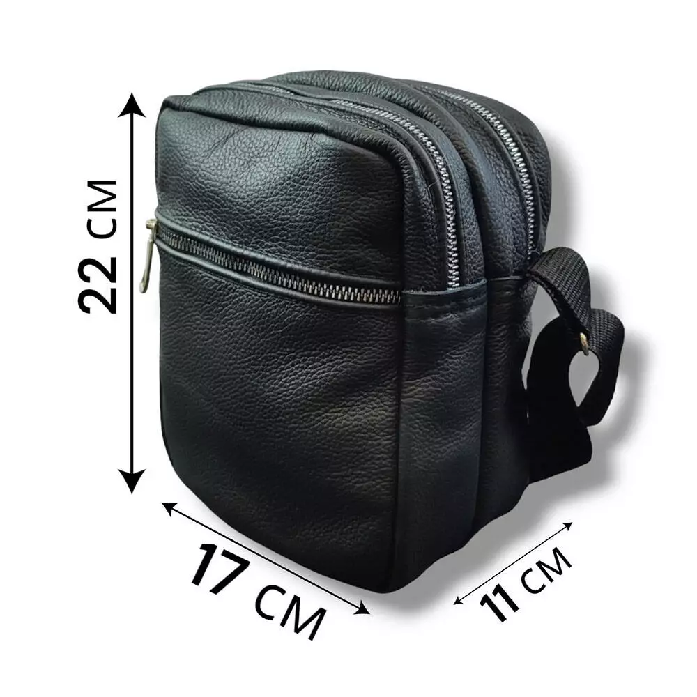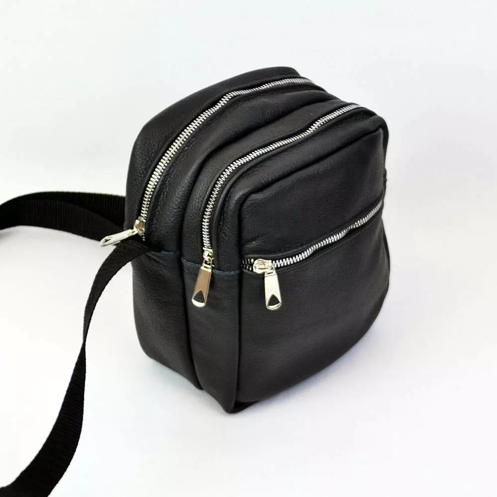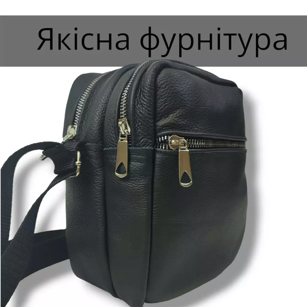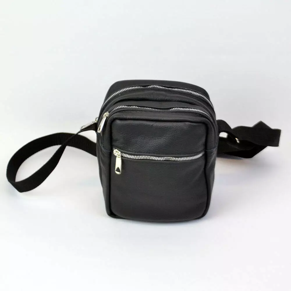 Качественная мужская сумка - мессенджер из натуральной кожи на 4 кармана с серебряной молнией