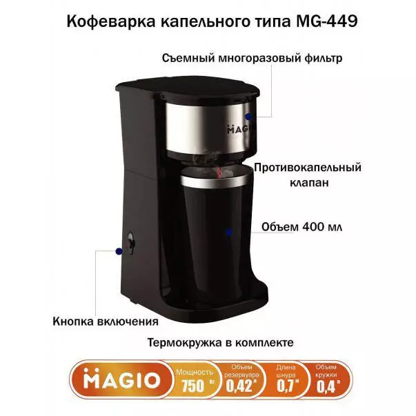 Капельная кофеварка Magio MG-449 с термостаканом
