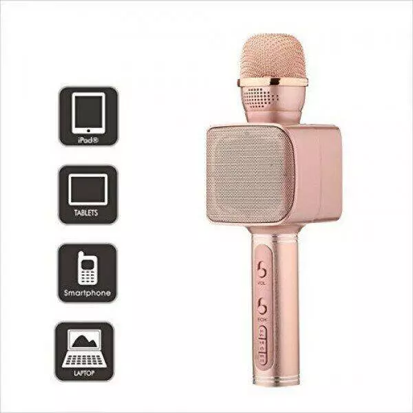 Караоке микрофон Magic Karaoke – это беспроводной гаджет, который сделает ваши будни ярче, а праздники веселее. Мы отметили, что микрофон для домашнего караоке покупают не только для детей, а и для создания веселых вечеринок и посиделок у костра. Девайс работает, как колонка караоке. Его насыщенный и чистый звук обеспечит настроение и отличную праздничную программу. Портативный микрофон имеет встроенный круглый модуль с динамиком и пассивной мембраной низких частот. Сделан под стандартный микрофон для вокала. Стилизованный с LED цветомузыкой.