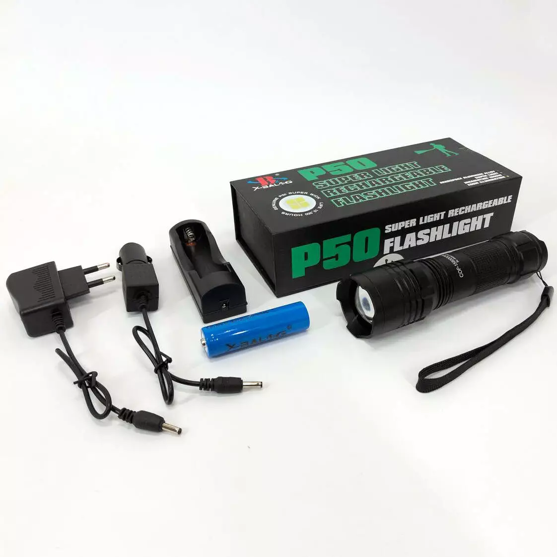 Фонарь аккумуляторный X-Balog BL 8900-P50 работает в пяти режимах: высокий, средний и низкий уровни яркости свечения, режим Стробоскоп (аварийный мигающий свет) и режим SOS. Направив фонарь в небо в режиме Стробоскоп или SOS, посторонний наблюдатель сможет увидеть луч света в радиусе 1000 метров.