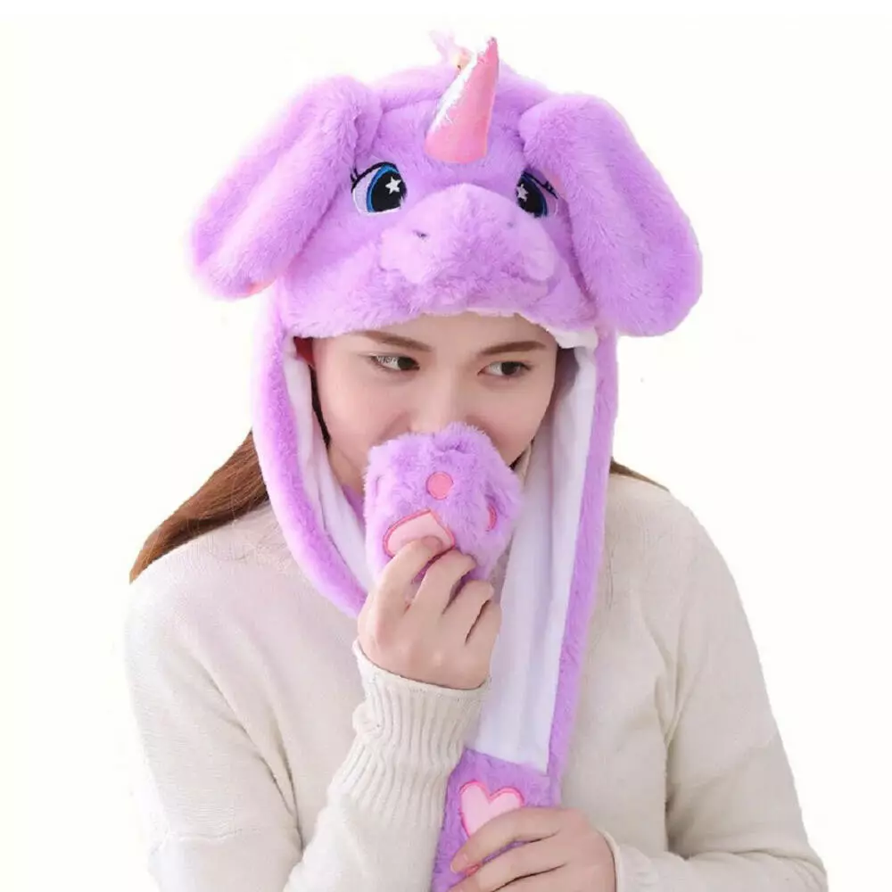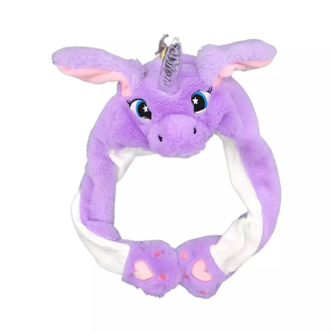 Карнавальная шапка с подсветкой: единорожек с носиком с поднимающимися ушами. Цвет: фиолетовый
