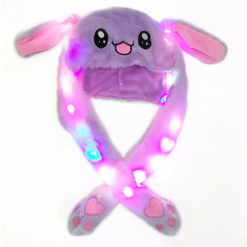 Карнавальная шапка с подсветкой: фиолетовый зайчик с поднимающимися ушами