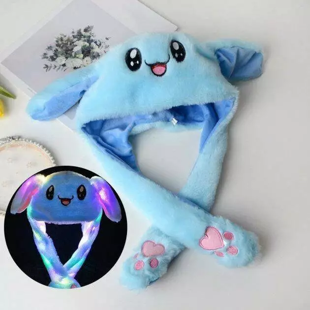 Карнавальная шапка с подсветкой: голубой зайчик с поднимающимися ушами