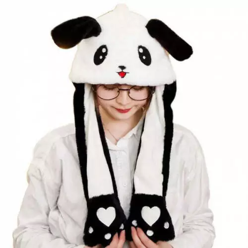 на шапке хлопают и вы приводите в движение то одно ухо то другое.
