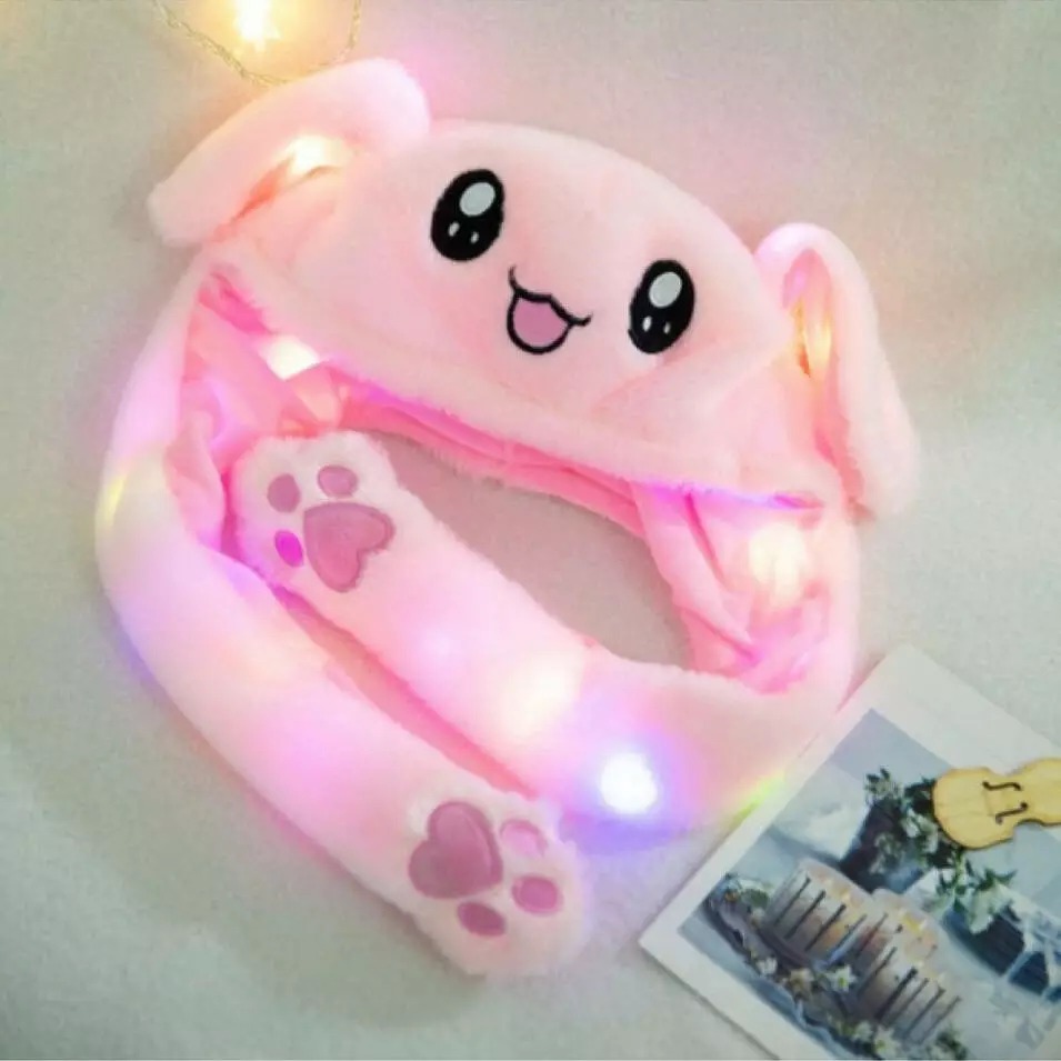 Карнавальная шапка с подсветкой: розовый зайчик с поднимающимися ушами