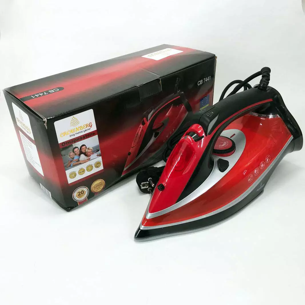 Керамический мощный Паровой Утюг Crownberg CB-7441 имеет функции самоочистки и вертикальное отпаривание
