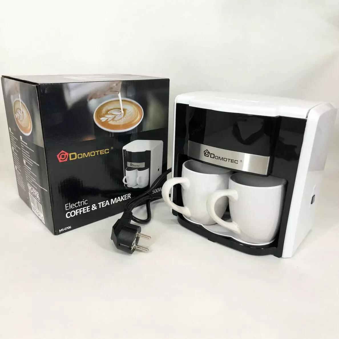 Кофеварка Domotec MS-0706 с двумя чашками в наборе белая