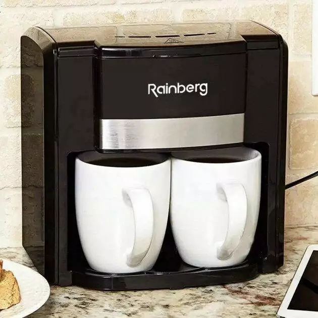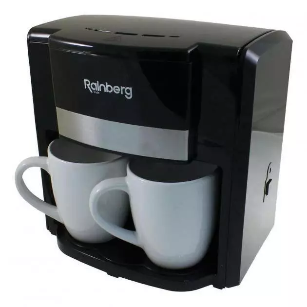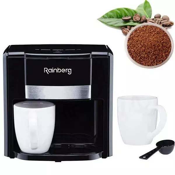 Кофеварка капельная Rainberg RB-613 (0,3 л, 500 Вт) с двумя керамическими чашками, маленькая кофемашина