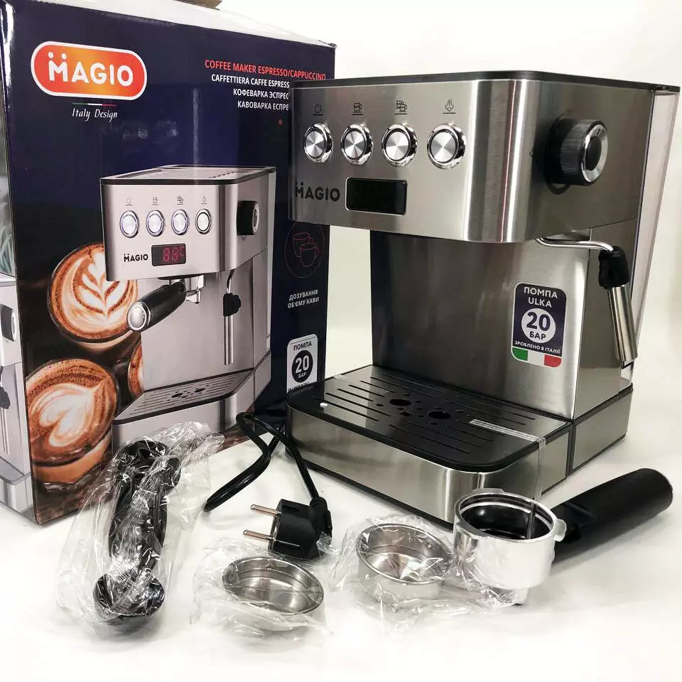 Кофеварка рожковая еспресо/капучино Magio MG-452 850 Вт, Кофемашина домашняя