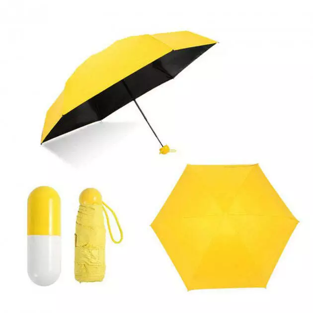 Компактный зонтик в капсуле-футляре Желтый, маленький зонт в капсуле. Цвет: желтый