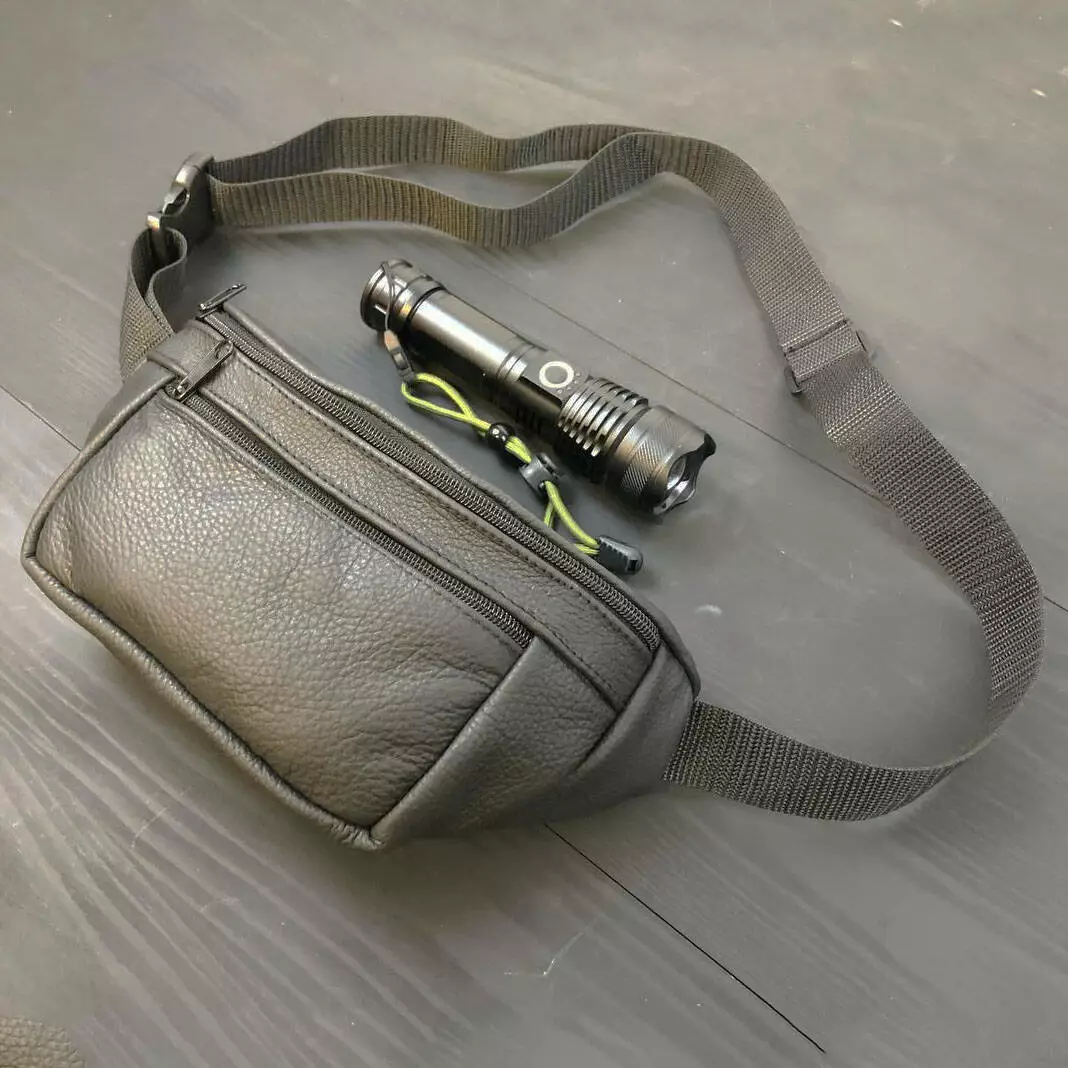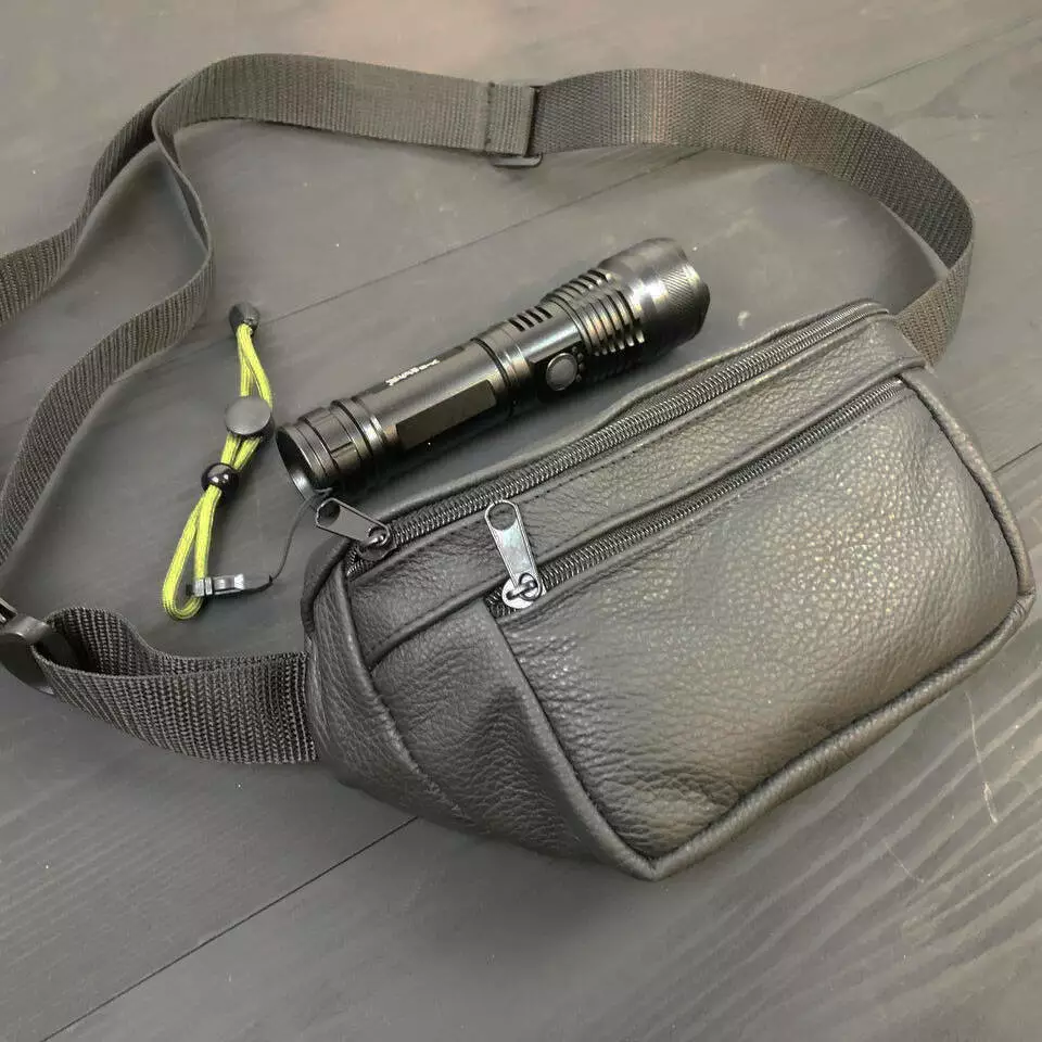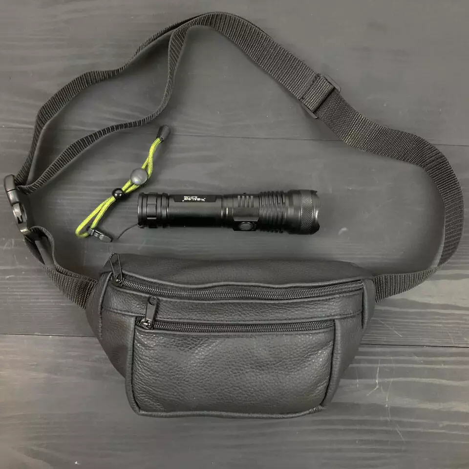 Комплект: кожаная бананка + тактический фонарь