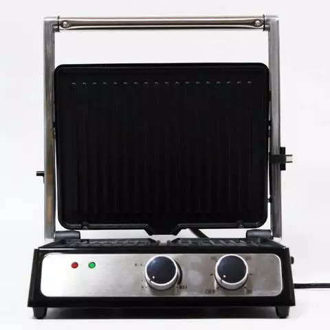 Настольный контактный электрогриль обладает огромным рядом преимуществ, позволяет готовить здоровую пищу. Нагревательные пластины имеют антипригарную керамическую поверхность, благодаря чему пища не пристает и не пригорает. На электрическом гриле Вы сможете без труда приготовить мясо, рыбу, хлеб, овощи и др. Приготовление происходит без добавления масла. Гриль выполнен в высококачественном металлическом корпусе из нержавеющей стали, с удобной ручкой для поднятия крышки.