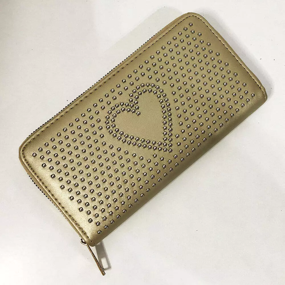 Кошелек из эко кожи с орнаментом сердца. Цвет: золотой