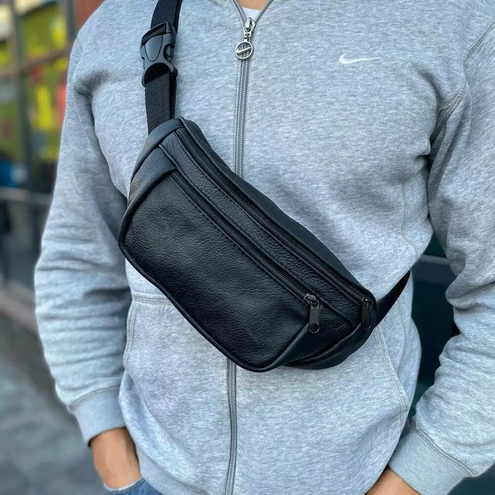 Кожаная качественная бананка мужская - женская сумка, черная сумка из кожи