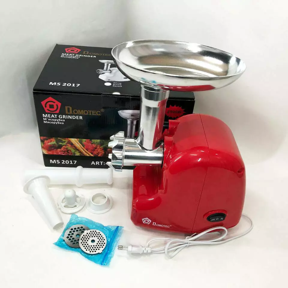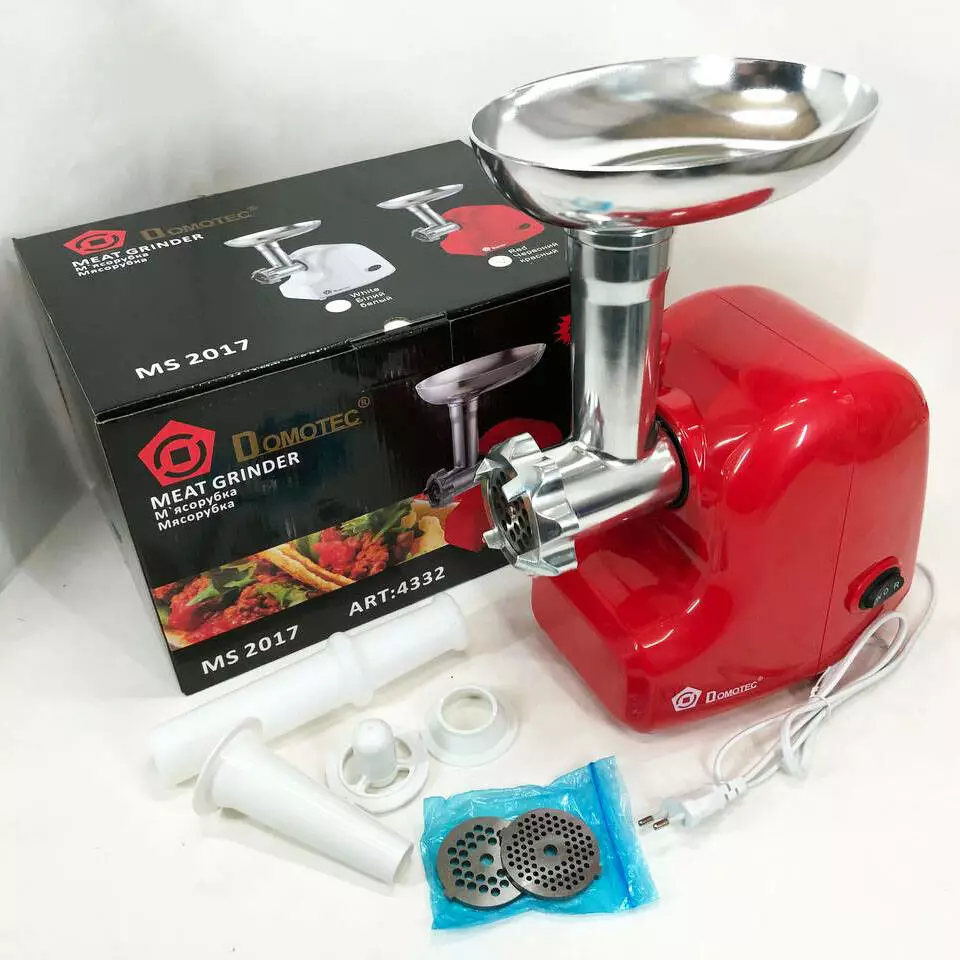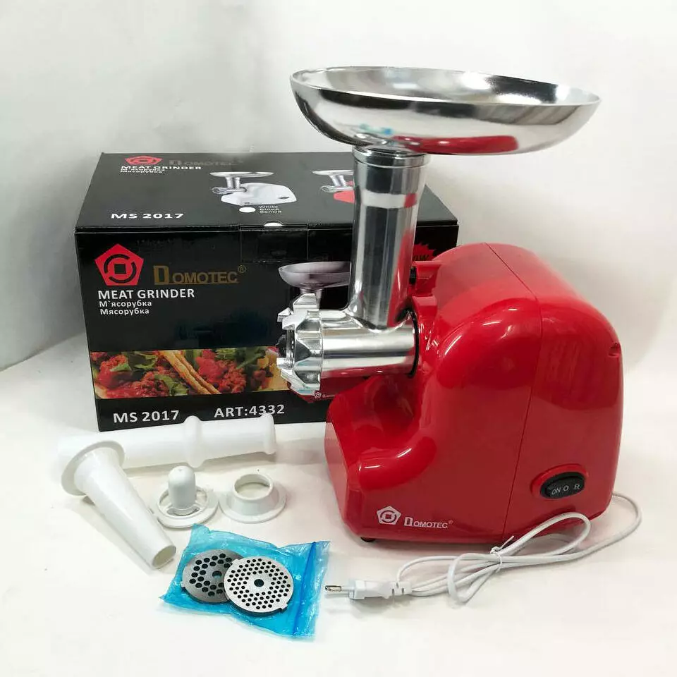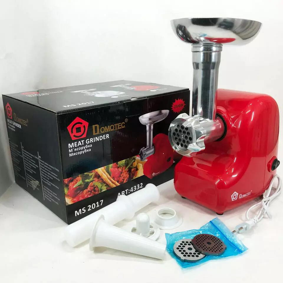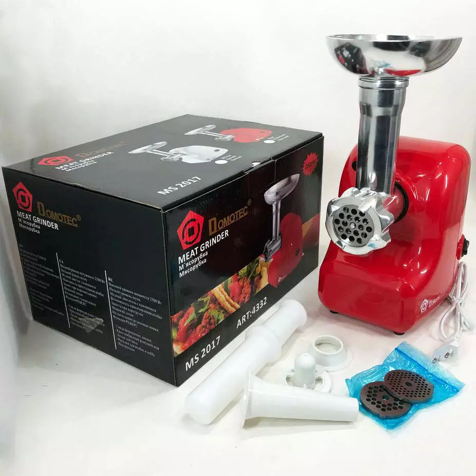 Кухонная электрическая мясорубка Domotec MS 2017 с реверсом 1500 W, мясорубка для шинковки. Цвет: красный