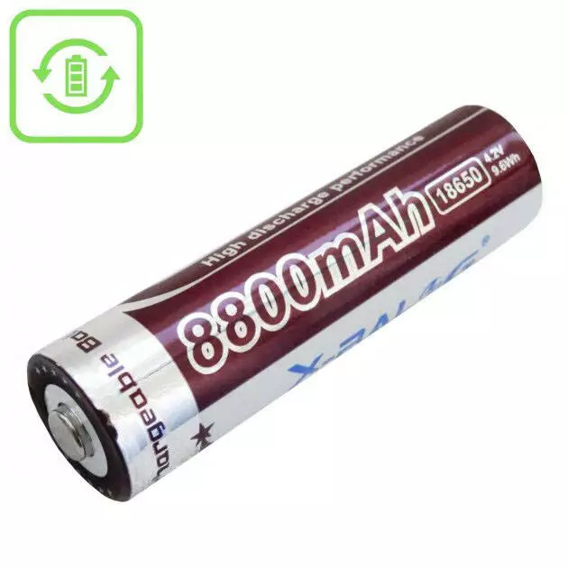 Аккумулятор X-Balog 18650 Li-ion 8800mAh 4.2V литий-ионный универсальный аккумулятор широкого применения. Аккумуляторы 18650 X-Balog относятся к большому ряду литий-ионных(Li-ion), которые применяются качестве источников питания во многих современных электронных устройствах требующих большой емкости: фонари, радиоприемник.