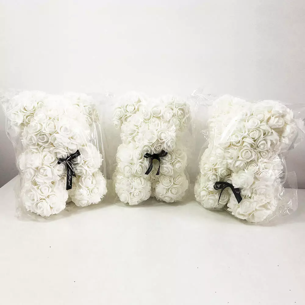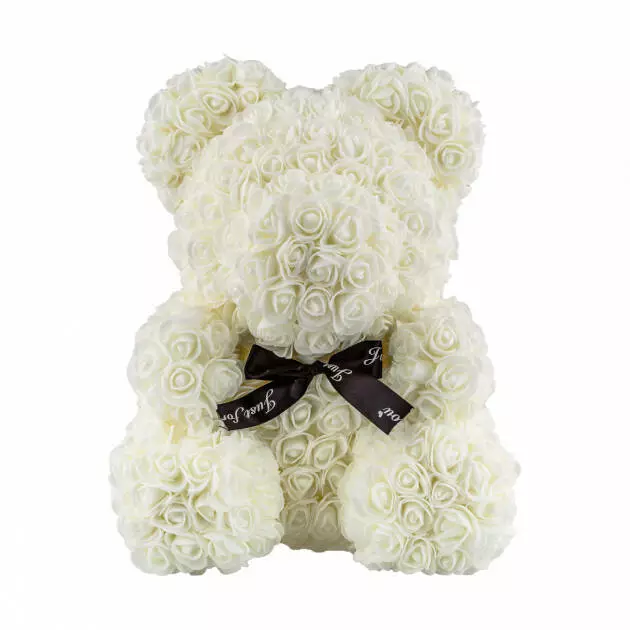 Лучший подарок: мишка из искусственных 3D роз 25 см. Цвет: белый