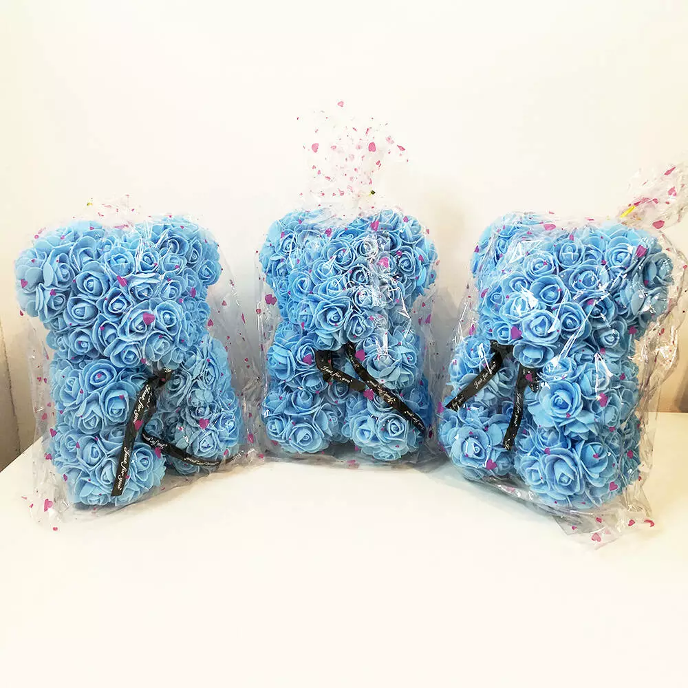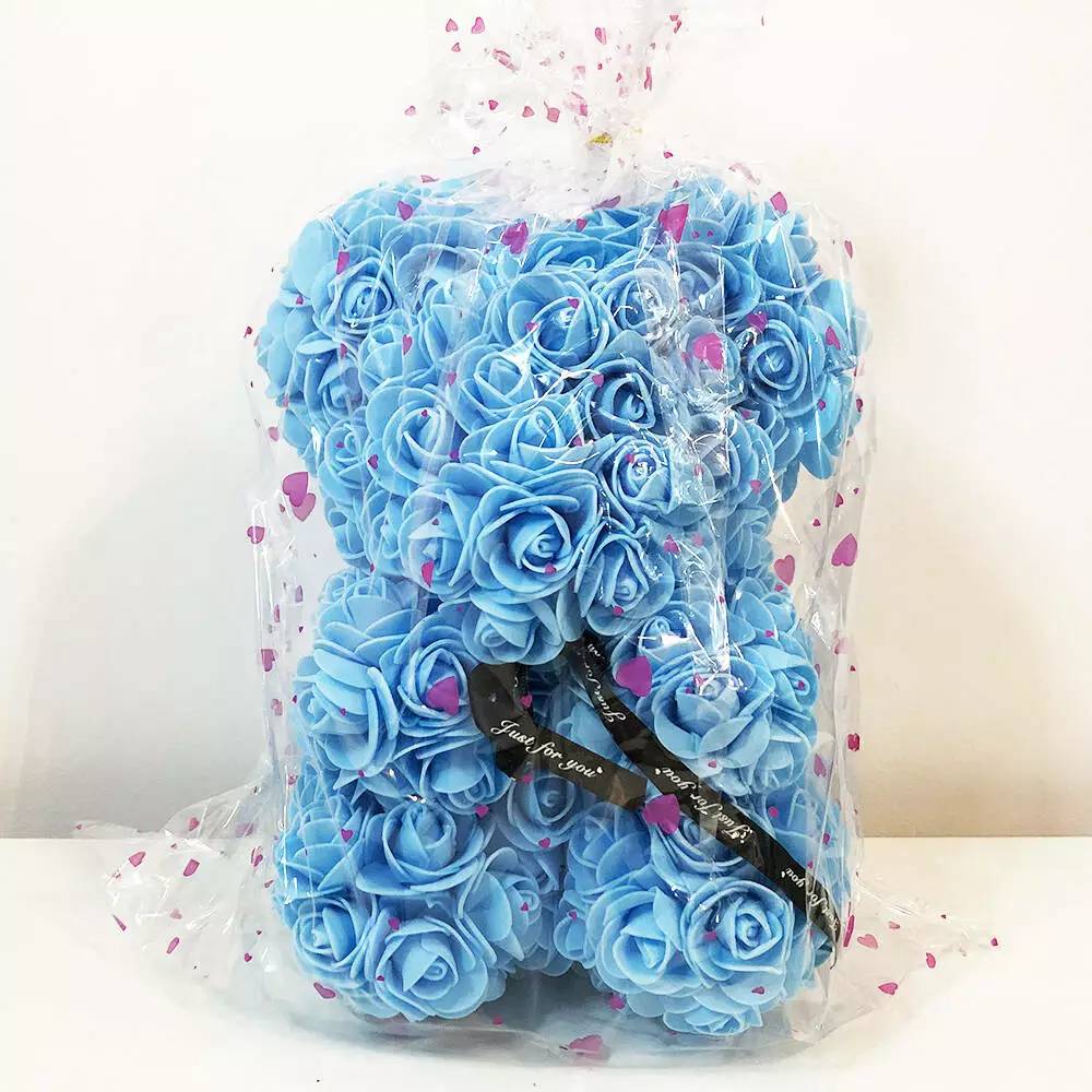 Лучший подарок: мишка из искусственных 3D роз 25 см. Цвет: голубой