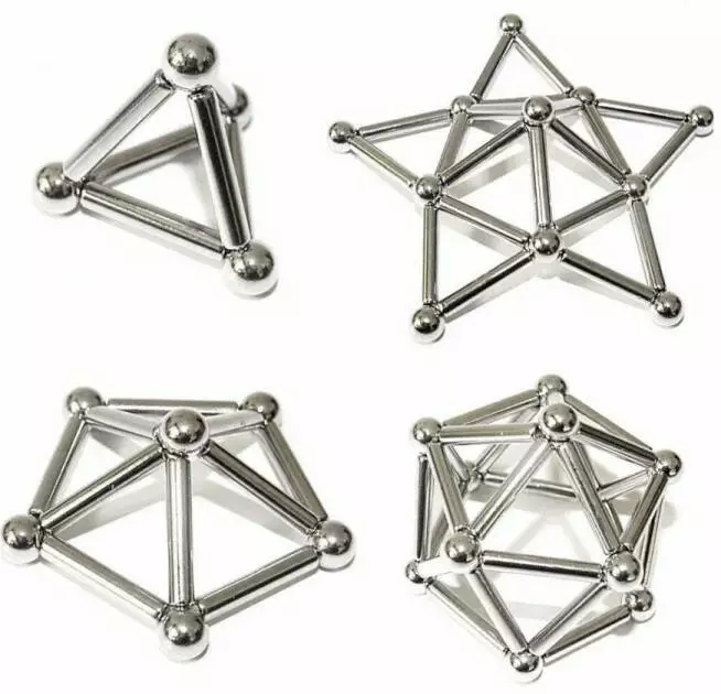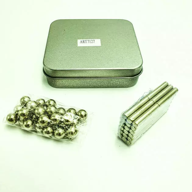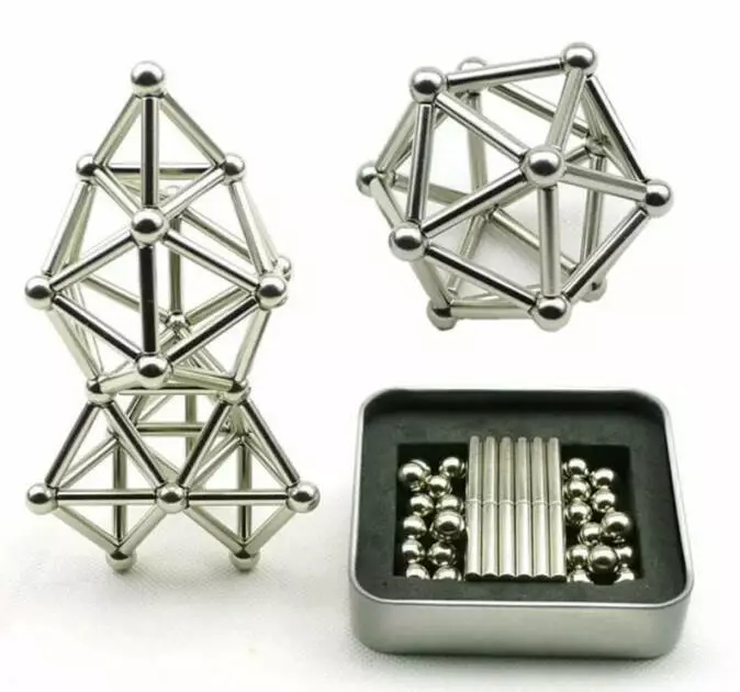 Комплектация: 36 магнитных палочек (длина – 23 мм, диаметр – 4 мм) и 27 металлических шариков (диаметр – 8 мм).