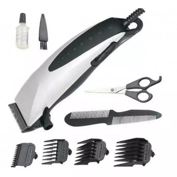 Устройство работает от электросети и потребляет при этом всего 10 Вт. В комплекте также идут парикмахерские ножницы и расческа, которые позволяют обрабатывать наиболее проблемные и непослушные волосы. Для обеспечения продолжительной и бесперебойной работы необходимо уделять внимание должному уходу за устройством. Для этого используйте щеточку и масло для смазки стальных лезвий.