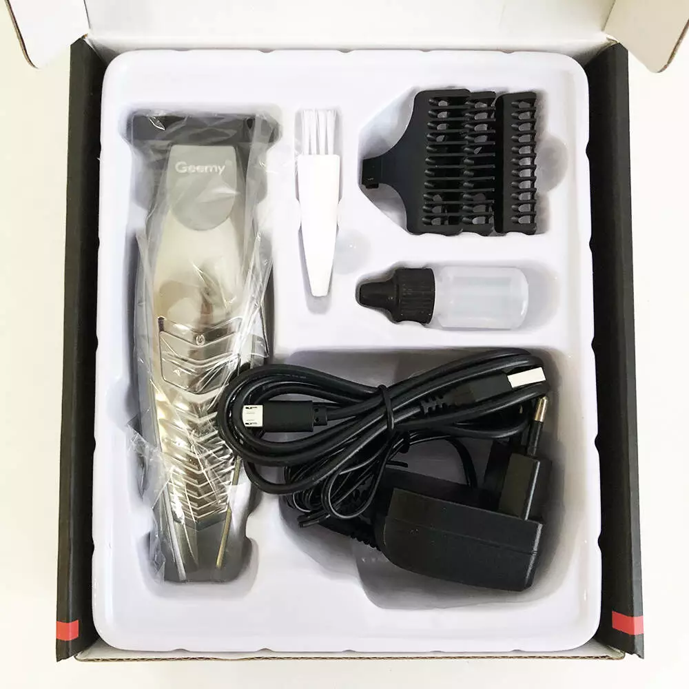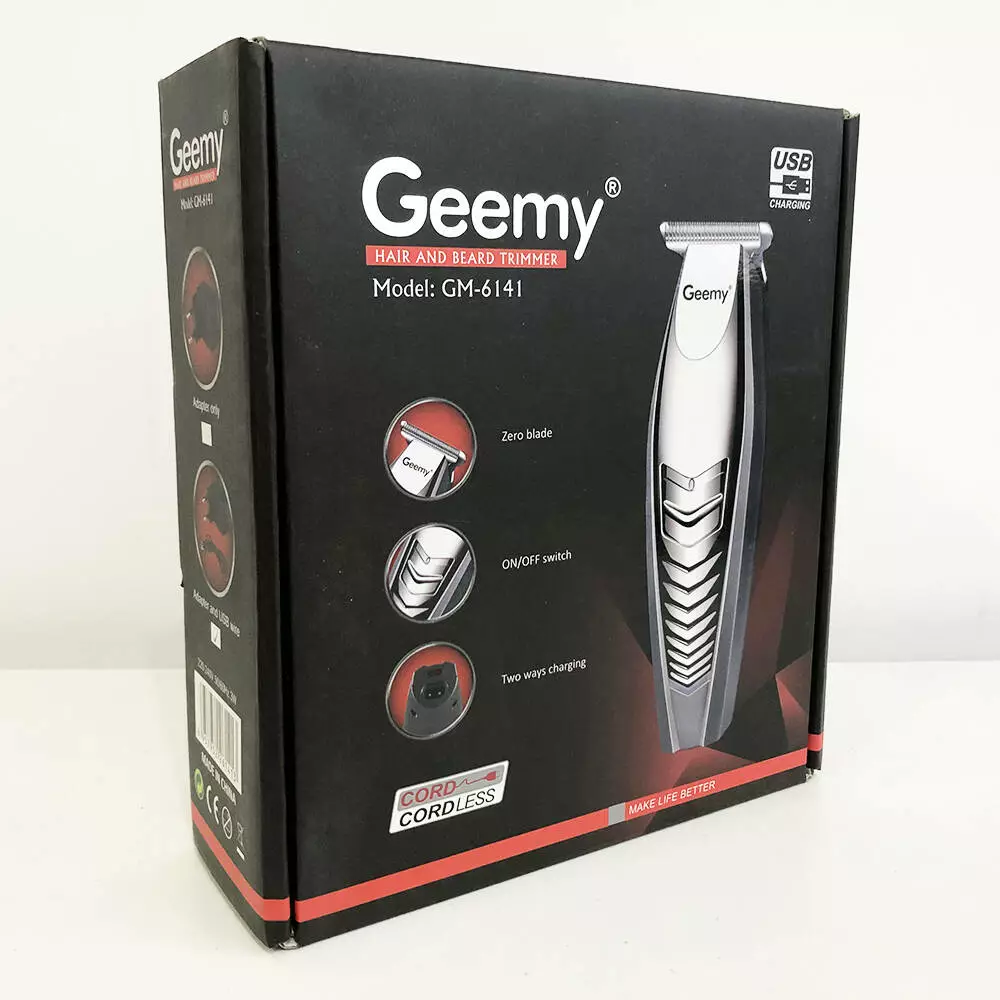 | Комплектация | Машинка для стрижки GEMEI GM-6141; 3 насадки; Зарядное устройство; USB кабель; Чистящая щеточка; Смазочное масло; Инструкция |