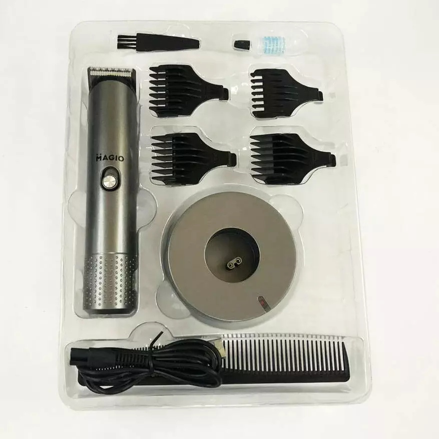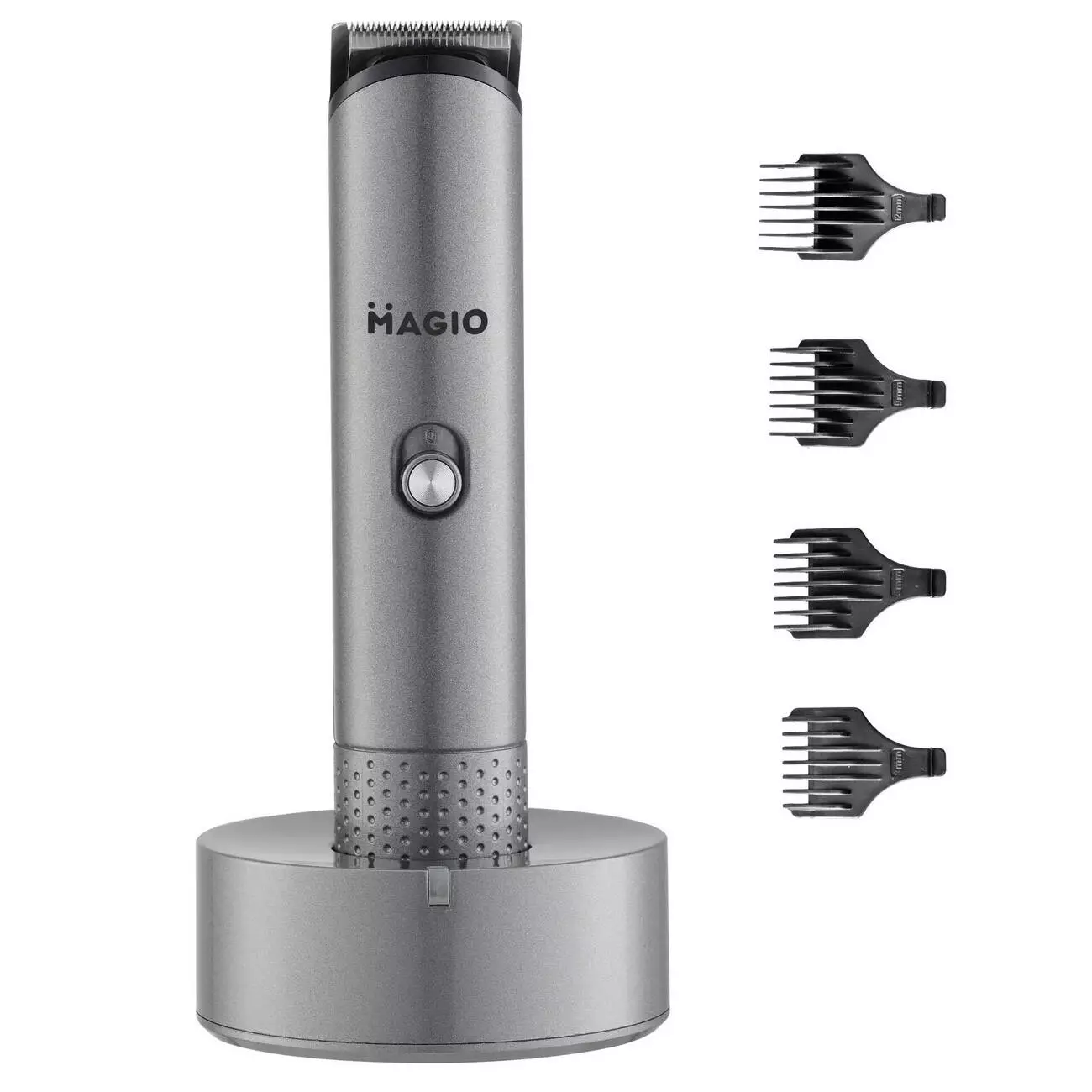 - Комплектация: Насадки (4 шт), Расческа, Ножницы, Масло, Щеточка для чистки, Подставка, Кабель