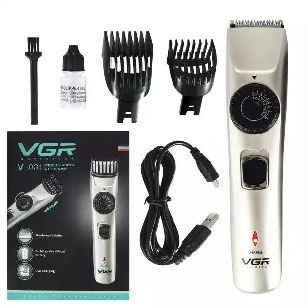 Машинка для стрижки волос беспроводная VGR V-031, триммер для бороды усов 2 насадки, окантовочная машинка