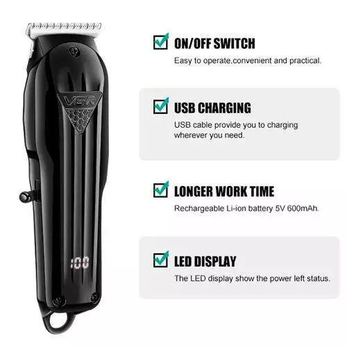 - 5. Светодиодный Дисплей: машинка для стрижки волос оснащена светодиодным экраном, который может отображать текущую высоту резки и уровень заряда батареи, что упрощает понимание использования и оставшуюся мощность.