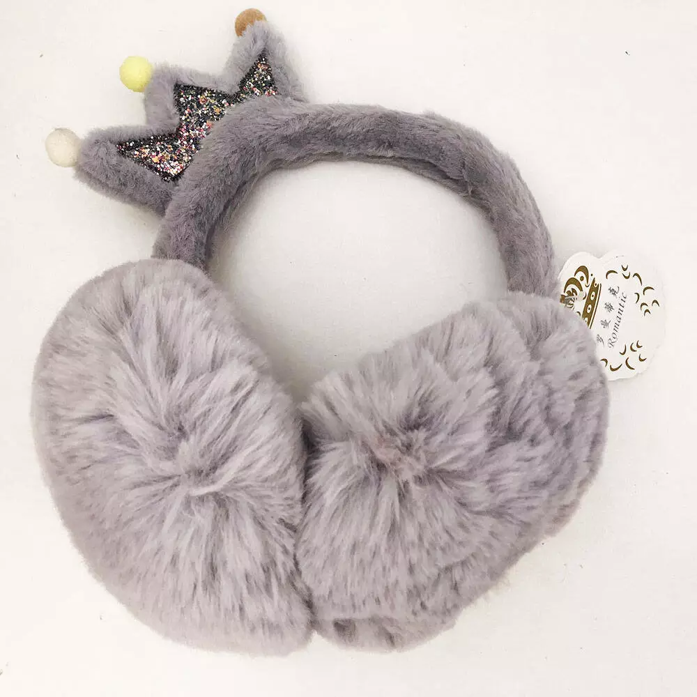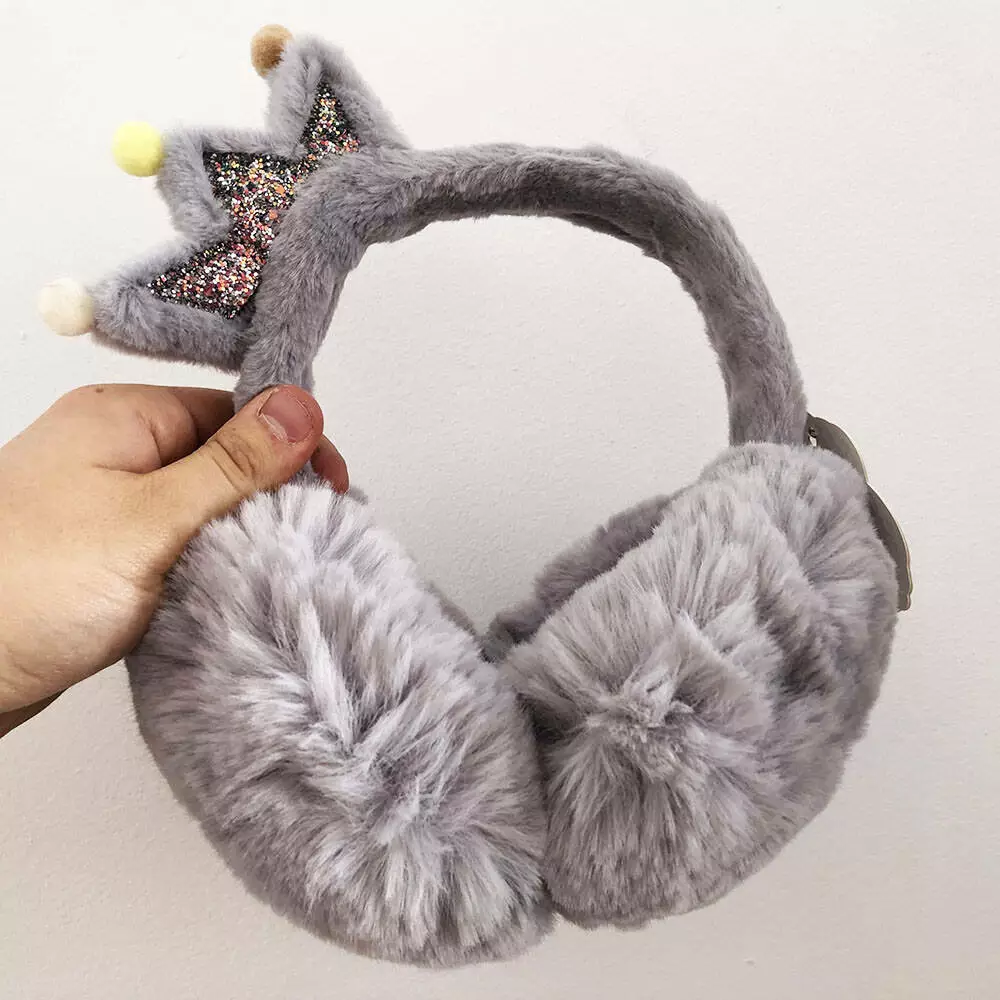 Меховые теплые наушники с короной. Цвет: серый