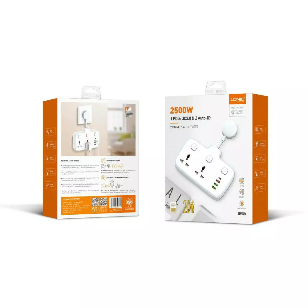 Мережевий подовжувач LDNIO SC2413, 2xSocket/1xType-C/3xUSB-A, PD