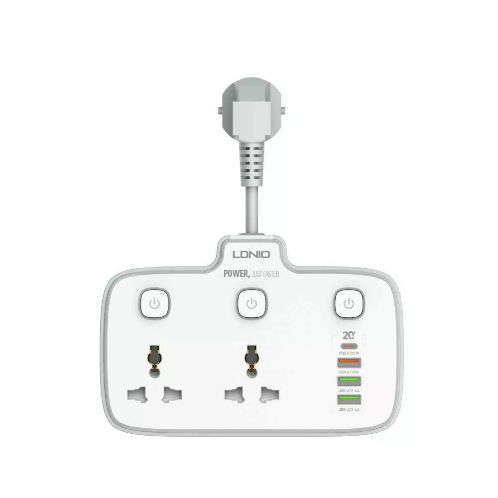 Мережевий подовжувач LDNIO SC2413, 2xSocket/1xType-C/3xUSB-A, PD 20W, QC 3.0, White