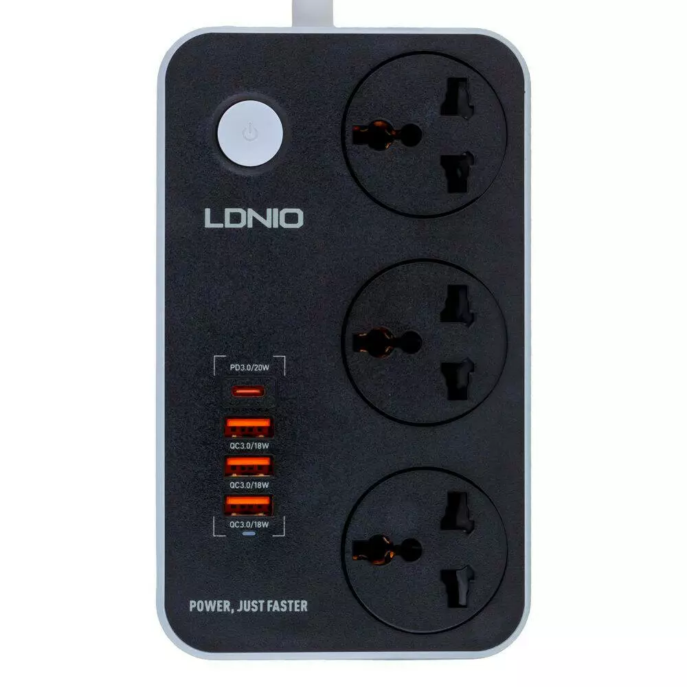 Мережевий подовжувач LDNIO SC3412, 3xSocket/1xType-C/3xUSB-A, QC